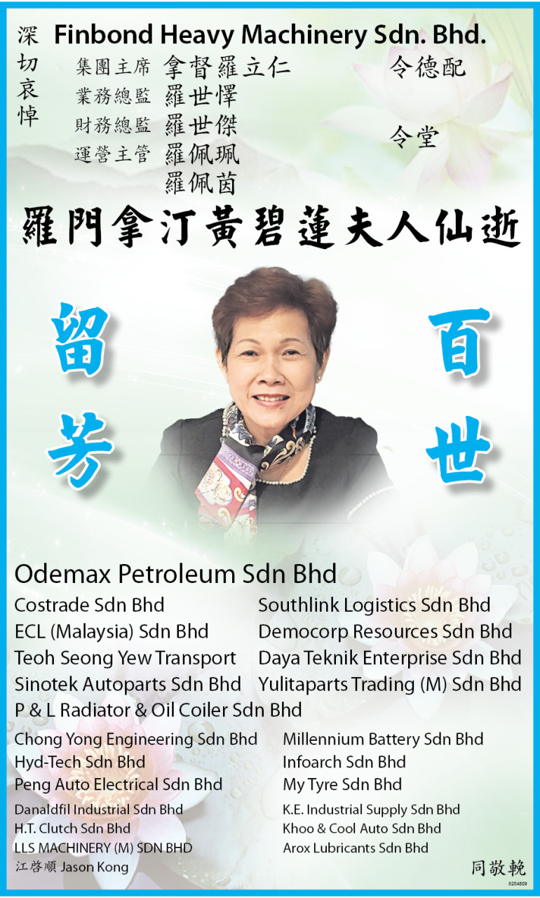 罗门拿汀黄碧莲夫人仙逝